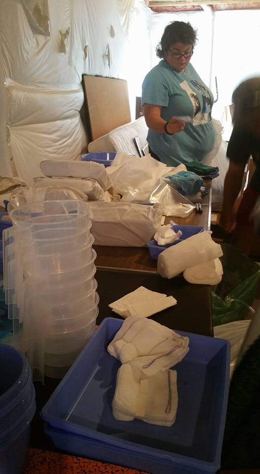 - Box 5: Diapers, gauze bandages, small towels and washcloths, surgical gloves, plastic containers for hospital, basins, syringes, gowns for surgeons and other doctors.